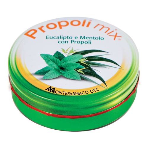 Propoli mixDescrizione Caramelle gusto liquirizia e menta con propoli. Ingredienti Zucchero, sciroppo di glucosio, estratto di liquirizia 5%, propoli 1%, olio essenziale di Eucalyptus, aroma naturale di menta, aromi. Caratteristiche nutrizionali Valori medi per 100 g Energia 1.649 kJ 388 kcal Grassi di cui saturi 0 g 0 g Carboidrati di cui zuccheri 97 g 82 g Proteine 0 g Sale 0,10 g Conservazione Validità a confezionamento integro: 36 mesi. Formato Scatole da 30 caramelle. Peso netto: 60 g. Cod. 02901